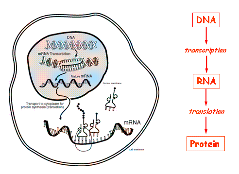 The central dogma of molecular biology, which is the core mechanism behind genomic studies and data, consists of the process in which DNA is used to manufacture protein.